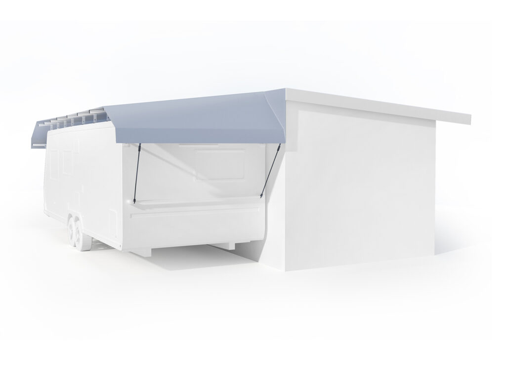 - Die Schutzdachbreite wird passend zur gemessenen Wohnwagenbreite + 8 cm gefertigt.