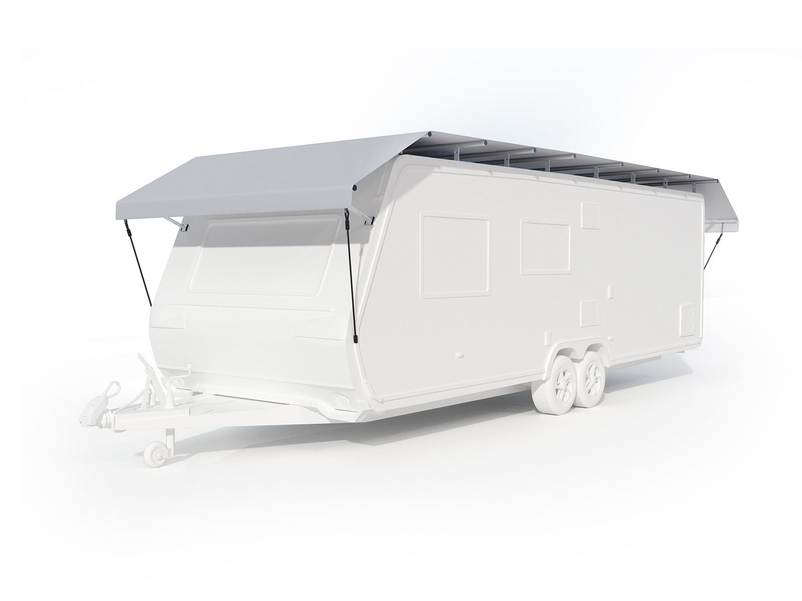 - Durch die flach auf dem Wohnwagen montierte Plane entsteht kein Hohlraum und dadurch keine Schwitzwasserbildung.